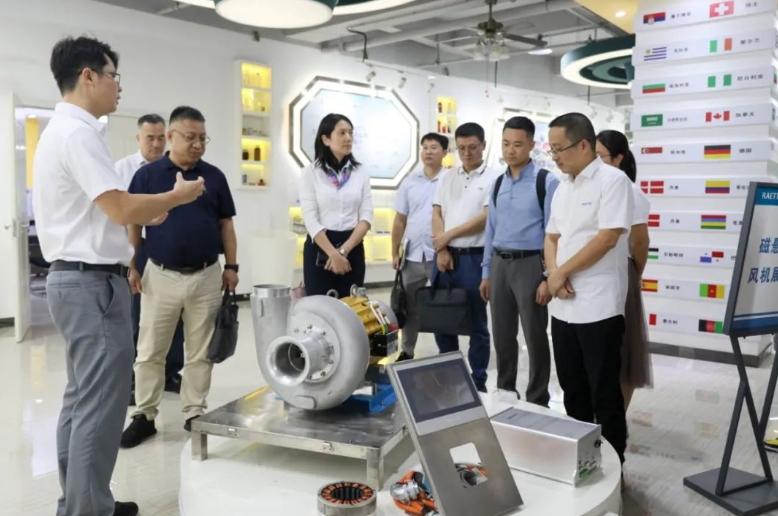 雷茨杨总向领导嘉宾一行详细介绍了雷茨的发展历程、主要产品、技术优势和未来前景,指出,在“双碳”时代,雷茨不断夯实技术实力,实现了空气/磁悬浮风机、磁悬浮空压机和冷水机、永磁电机的技术突破,创新拥有空气悬浮和磁悬浮核心技术,摆脱了风机和空压机被国外卡脖子的现状。雷茨的源头工厂和精密制造,确保品质和服务,通过客户反馈,雷茨风机相比传统风机节能率在30%以上,已经成为污水处理、水泥、纺织、冶金、火电等行业提标改造的创新替代风机。